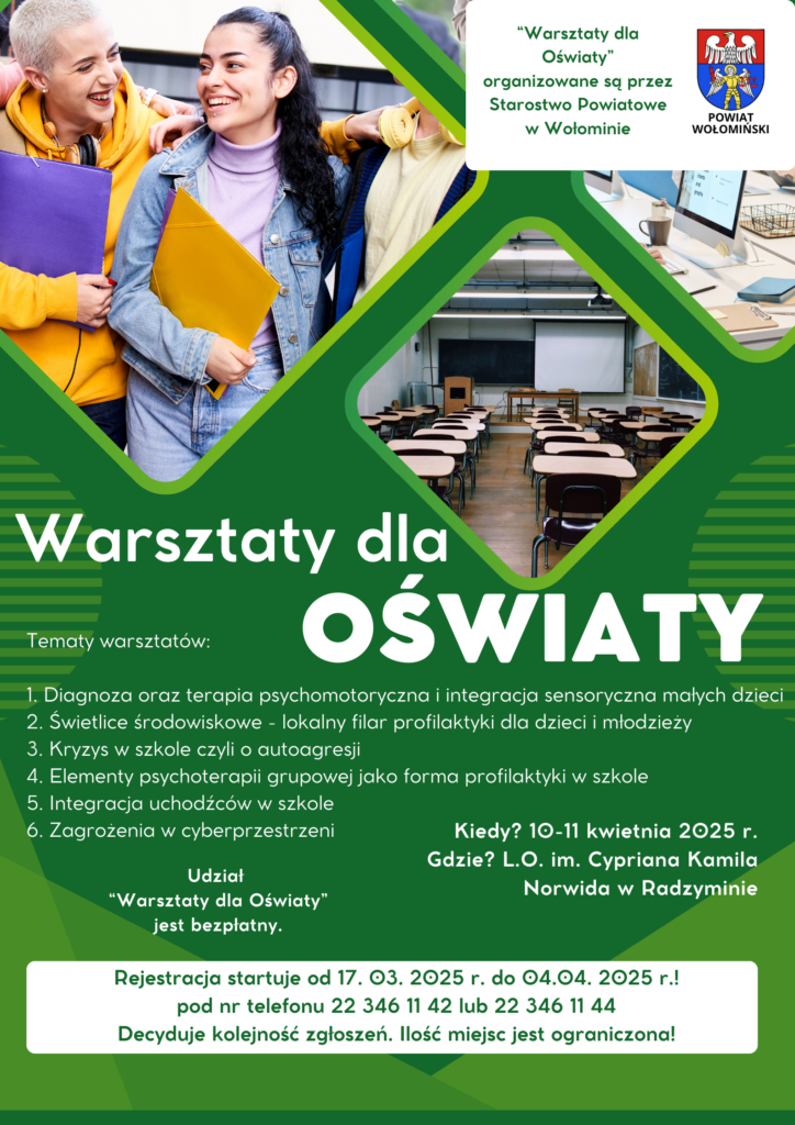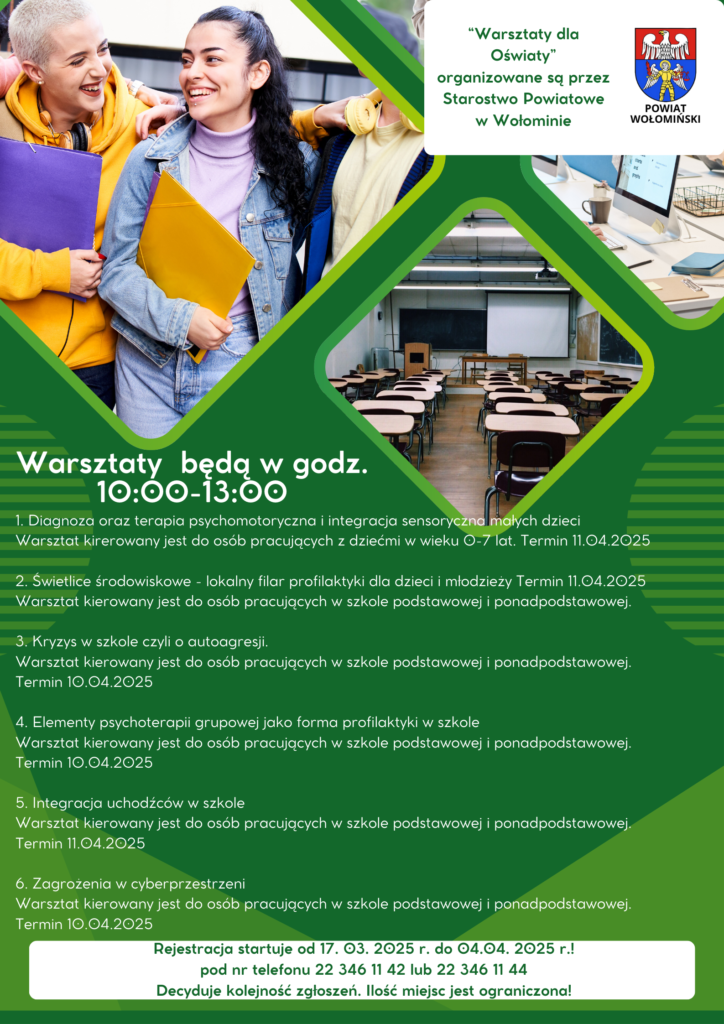 W piątek 11.04.2025 miałam przyjemność razem z Aleksandrą Oleszek prowadzić warsztaty dla nauczycieli i pedagogów w ramach „Warsztatów dla Oświaty” organizowanych przez Starostwo Powiatowe w Wołominie. Dziękuję dyrektorowi OPTU Tomaszowi Makowskiemu za rekomendację.